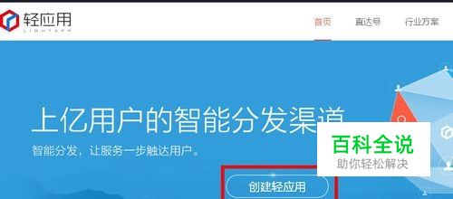 来到百度轻应用首页,登陆百度账号之后,再点击首页中的“创建轻应用”按钮。(如下图)