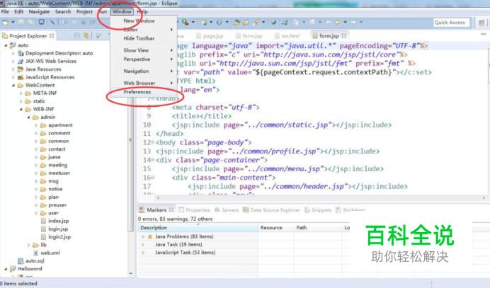 preference 点击【Window】,在下拉菜单中选择【preference】,如下图所示: