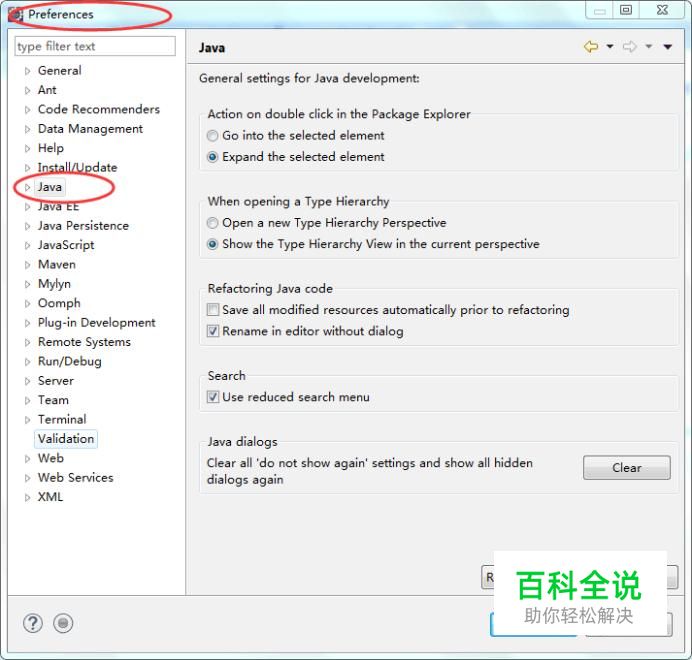 Java 在谈弹出的【preference】窗口中,点击【Java】,如下图所示: