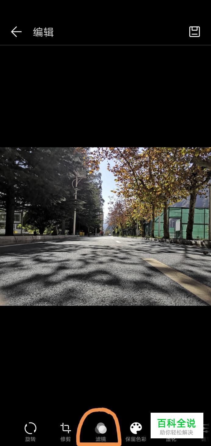 然后,点完“编辑”后,手机会自动跳到下一个窗口去,在那个窗口中,图片的下方会出现一个“滤镜”,这个时候我们需要点击一下那个“滤镜”。