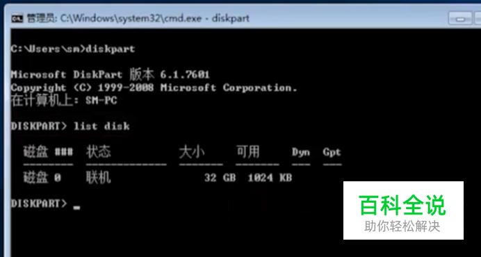 在CMD界面中我们输入diskpart命令,然后输入list disk命令,如下图所示
