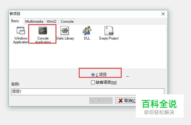 首先我们需要在Dev C++软件中创建一个C语言项目,项目类型选择控制台程序,如下图所示