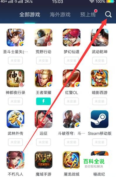 打开软件,点击搜索按键搜索“刺激战场”。