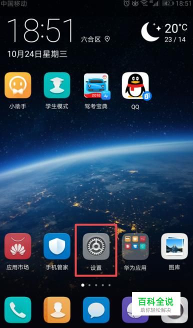 首先,我们打开我们的华为手机,然后我们点击设置,如图所示;
