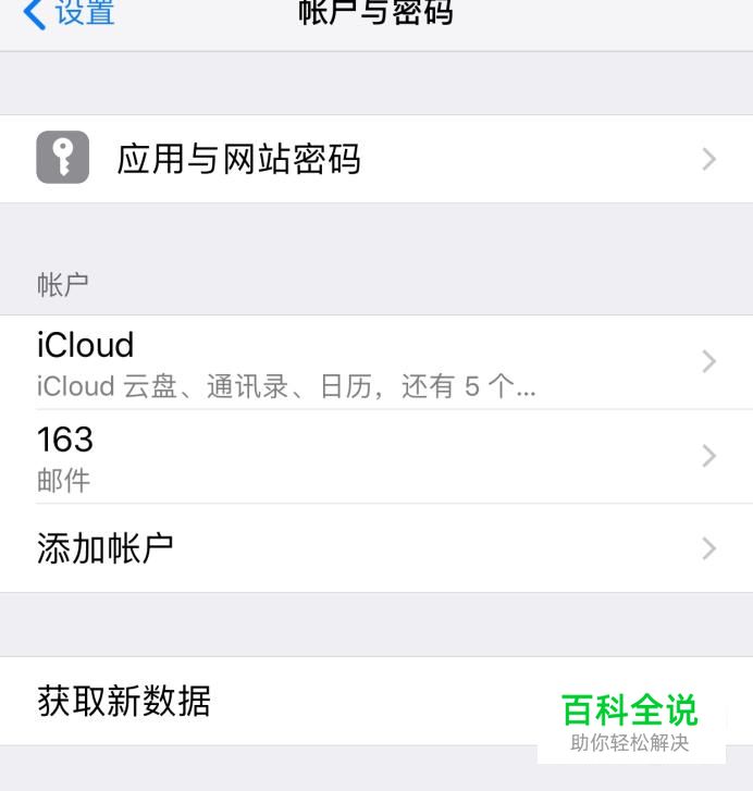 首先打开手机中的设置,然后找到账户与密码,一般首次使用苹果手机时会需要输入邮箱,没有的话可以在这里进行设置。
