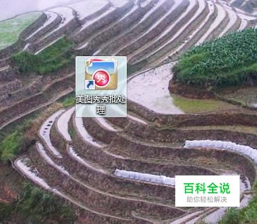 首先在我们的电脑桌面上找到美图秀秀批处理并点击它,如下图所示。