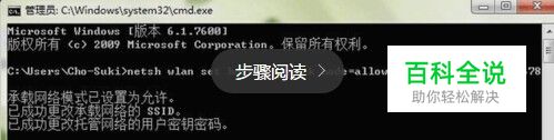 回到命令指令符,输入:netsh wlan start hostednetwork 回车,显示以下内容,无线网络共享打开成功