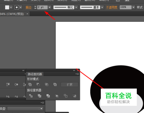 然后选择钢笔工具,勾出路径,描边改为2pt,如图所示