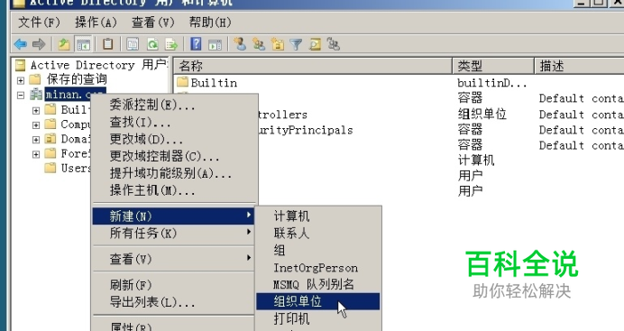 建立好OU之后,就可以在OU下创建其他活动目录对象,或者将现有的活动目录对象移动到O