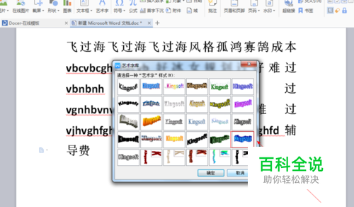 如图所示,我们点击箭头所指的艺术字,之后我们点击“确定”按钮。