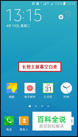 1.在标准模式待机页面下,长按主屏幕空白区域。