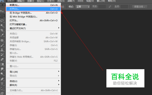 如图所示,在弹出的列表菜单中,我们点击箭头所指的“打开(O)...”这一项。