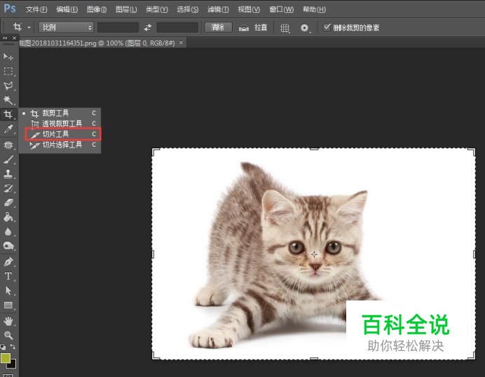 打开PS,把你要切割的图片直接拖入PS画布中,然后点击左侧方的“截图”按钮,在弹出来的小窗口中,点击”切片工具“