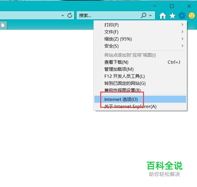 点击弹出快捷菜单中的“Internet选项”。