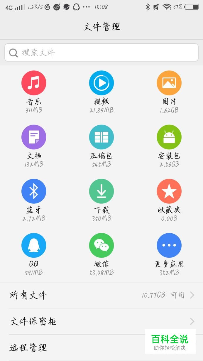 首先打开手机自带的文件管理软件,如图1所示。进入文件管理后,你会看到出现一个新的界面,如图2所示。