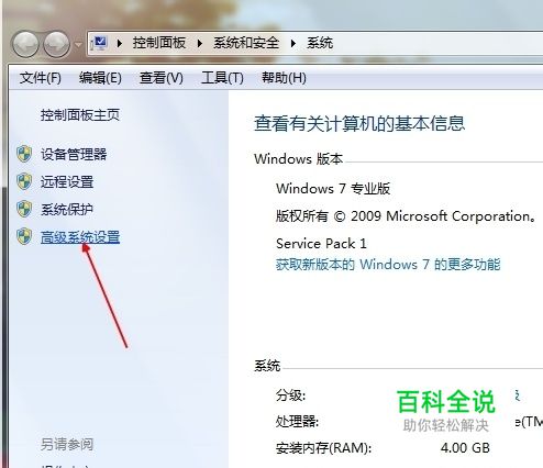 在打开的窗口中左边找到“ 高级系统设置”,单击打开。
