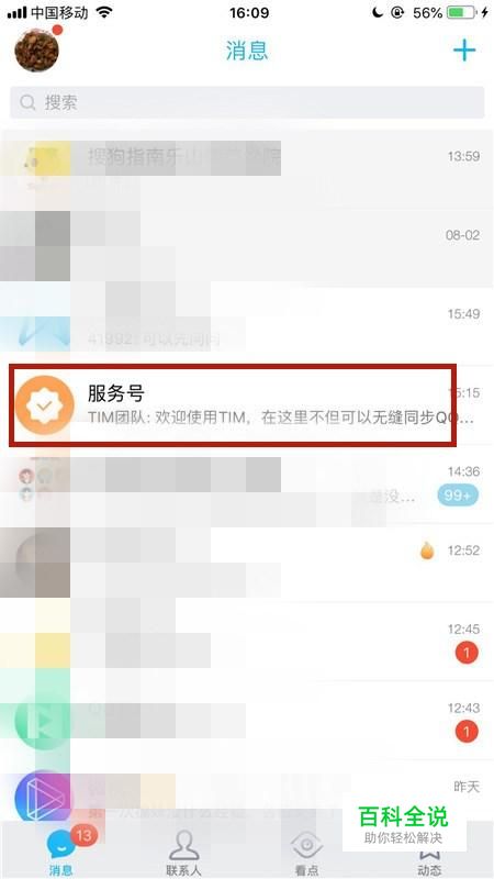 接着点开一个服务号并点击屏幕右上方的图标,如下图所示。