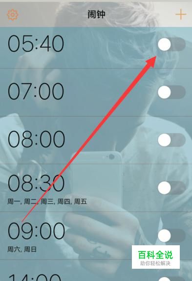 进入之后,将选择好设置闹钟的时间,点击图示位置的开关。
