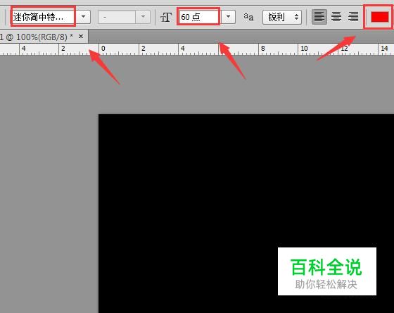 打开ps之后我们新建一个文件,并将背景设置黑色,然后再在工具箱内找到文字工具,如图所示: