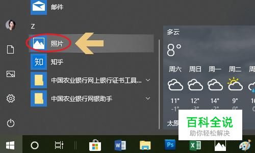 如果电脑系统是win10,那么可以通过系统自带的“照片”应用将其打开,点击开始菜单,然后在列表中即可找到照片应用了;