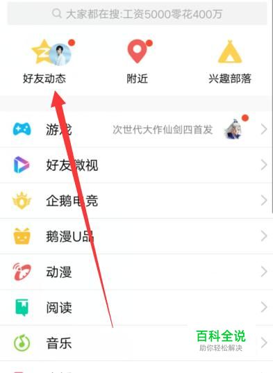 进入之后,点击“好友动态”,进入下一页面,如图所示。