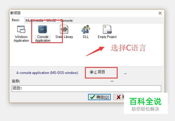 接下来在弹出的新建项目界面中我们选择C语言,如下图所示