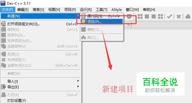 首先点击文件菜单,然后选择新建下面的项目,如下图所示