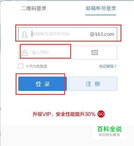 进入163邮箱页面,输入账号和密码,点击“登录”
