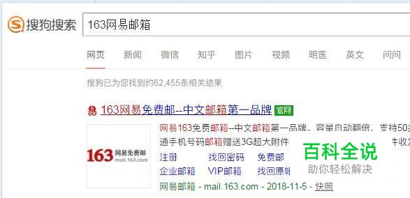 打开搜狗浏览器,在搜索框中输入“163网易邮箱”,点击官网进入新的页面。