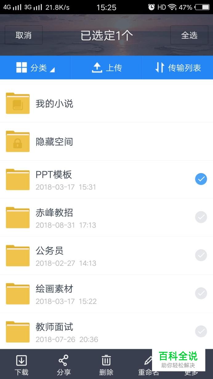 打开百度云,进入首页后,可以看到自己的文件,长点自己想要删除的文件,会出现以下界面。