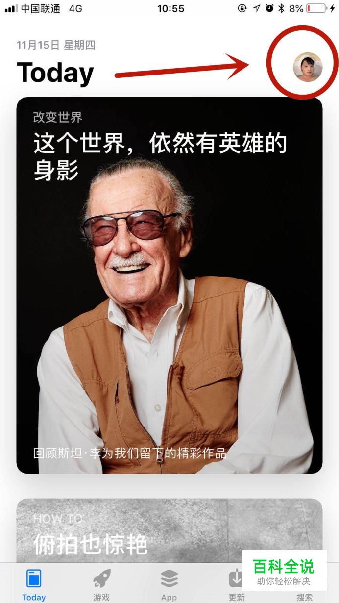 进入App Store界面后,右上角有个人账号的头像,点击进入。