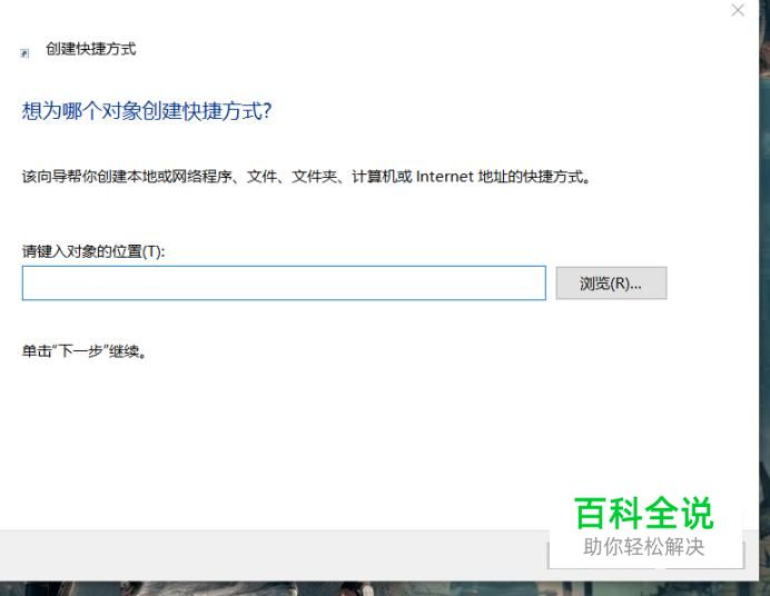 然后,进入到相关页面以后我们选中要创建快捷方式的对象,可以从浏览中选取,再点击下一步。