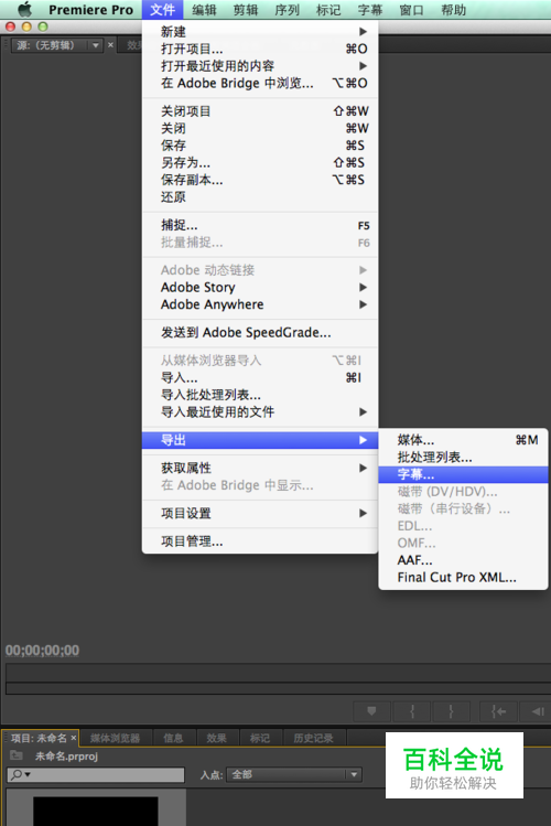 点击保存好的字幕,选中以后,文件-导出-字幕,我们会道出一个prtl的文件。