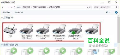 查看计算机中已安装的虚拟打印机的方法,依次进入“控制面板”-“设备和打印机”界面,在此就可以查看当前计算机中安装的虚拟打印机设备。如图所示: