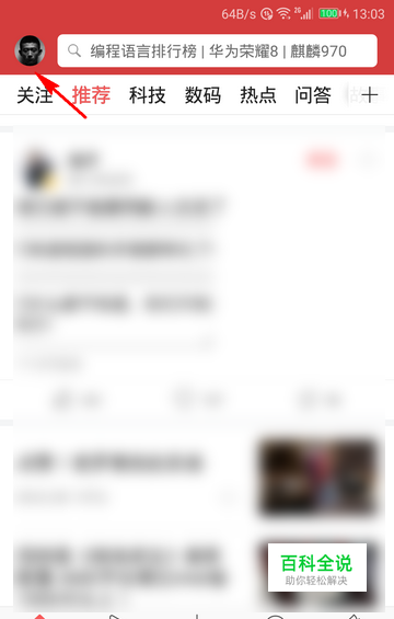首先,将手机联上网。在手机上打开今日头条主界面后,点击左上角的个人头像。
