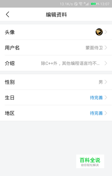 然后,在个人主页上就会出现一个“编辑资料”的链接,点击它。