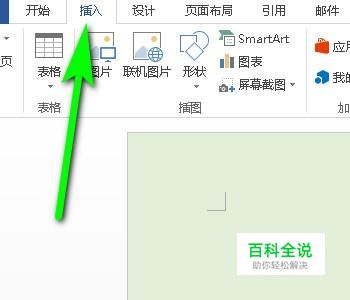 启动WORD软件,新建文档,把页面背景设置为绿色;再点击插入选项卡