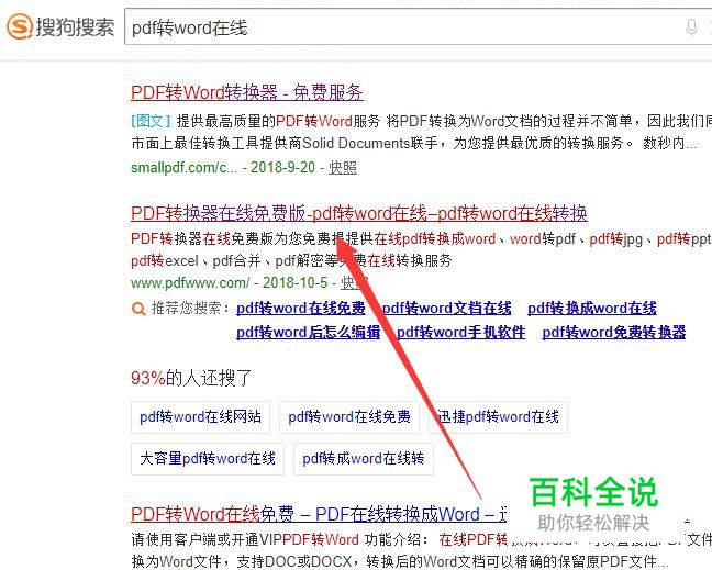 进入之后,搜索“PDF转Word在线”,点击并进入,如图所示。