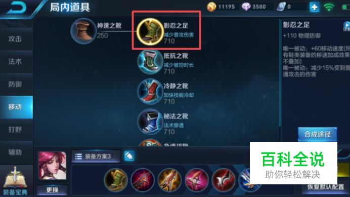 首先,伽罗的第一件装备是比较适合出影忍之足的,这个装备可以提高伽罗的移动速度,其次,最重要的可以提高物理防御,对于前期的伽罗,在有物理防御之时,加上移动速度,是可以前期就压制对方英雄的。