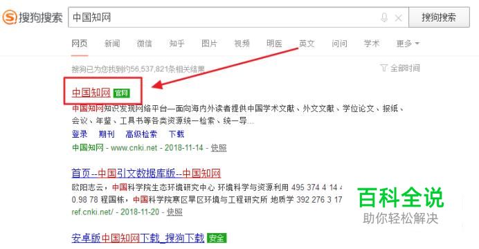 首先在搜狗浏览器中输入中国知网,然后点击中国知网官网。如图。