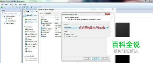 1.选中一个虚拟机,双击任意 Devices项将进入设置页面, 2.在弹出窗口中选择Mard disk(硬盘) 再点添加 3.在弹出窗口选中第三项再点next下一步