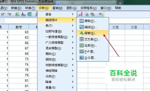 选择 分析-> 描述统计->探索。单击打开。