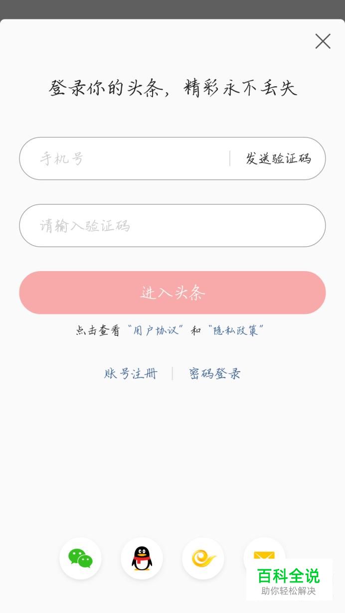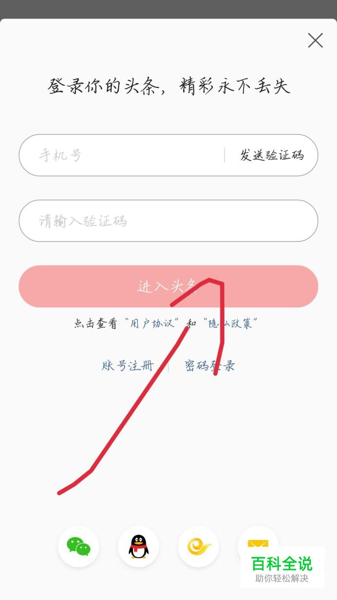 输入你的手机号和收到的验证码,点击“注册”选项,如图1箭头所示。然后你就注册完成,可以进入头条了。