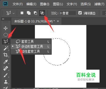 接下来点击多边形套索工具,再点击属性栏上的与选区交叉按钮。