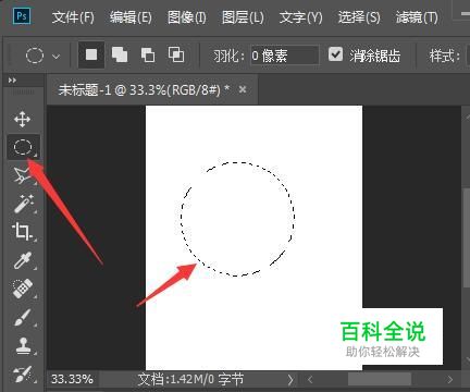 首先,打开PS CC2018,新建空白文档,点击左侧的圆形选择工具,按住Alt+Shift,绘制出一个正圆。