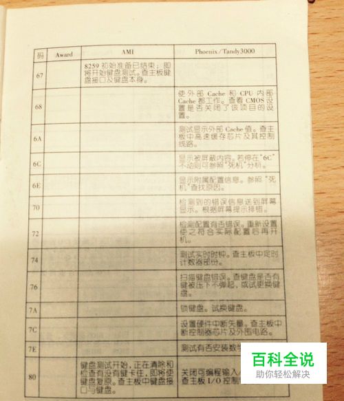 我们通过诊断卡显示的代码从说明书上找到故障的问题。