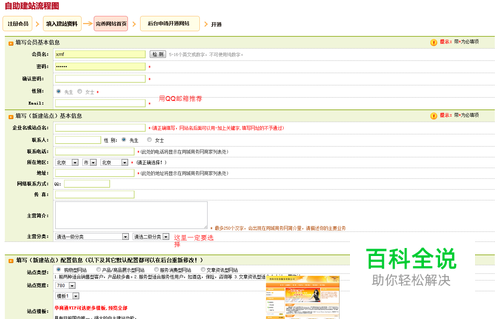 建站第一步 注册用户,输入建站的信息 【注意的是检测用户名是否重复,请使用 QQ邮箱便于找回密码】(也可以直接在网站首页最上面的地方直接输入二级域名建站 )。