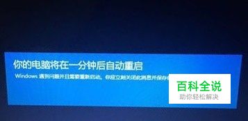 因为突然断电或者其它原因导致w10笔记本电脑一直提示一分钟后重启。