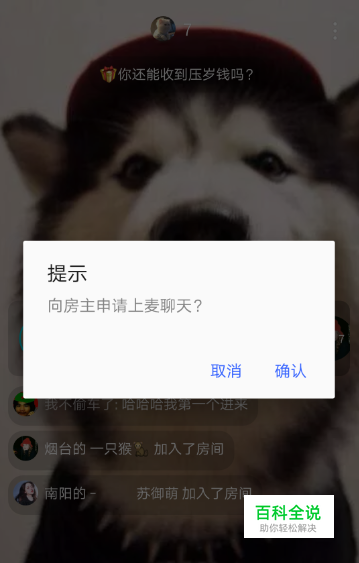 【提示】的窗口,需要向房主申请上麦才可以语音聊天,点击“确认”。