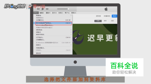 下载安装最新版itunes软件,打开软件,点击“文件”,选择“把文件添加到资料库”